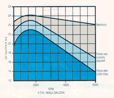 BenefitsFuel economy - by burning the petrol more completely the engine uses less fuel resulting in a significant increase in miles per gallon. Increased power - as a direct result of more complete combustion, the engine produces more power for the same amount of fuel making your car or bike more responsive. Better starting - the increased energy in the spark makes starting easier and gives "first time" starting almost every time. Reliability - the unit gives a reliability, which is only obtainable through the latest solid state electronics. Cleaner exhaust and lower greenhouse gas emissions - electronic ignition is the standard in many countries that have stringent exhaust regulations. Reduced maintenance - with no contacting moving parts to wear out, no points to replace, and timing that stays accurate for an indefinite period maintenance requirements are considerably reduced. Smoother running - the accurate timing of the unit together with the complete elimination of points bounce means that an engine runs much more smoothly. How It WorksThe contactless electronic ignition system uses an optical trigger to energize the coil. A slotted disc fitted, revolves between an infra-red light emitting diode and a photo-transistor. As the slots in the disc alternately expose and cover the light they activate the photo-transistor which in turn triggers the circuitry to switch the coil and produce a spark. At high speeds, the disc system allows up to three times longer for the coil to charge than is available with a points system. This ensures a powerful spark even at high speed. Another important feature of this system is that there are no contacting moving parts, so wear and tear are eliminated and the timing stays accurate for an indefinitely long period. Simple to fitThe NewTronic ignition kit is easy to fit and comes with full, simple fitting instructions. First the old points and condenser are removed from the distributor and replaced by the adapter, disc and lamp. All that remains is to connect the unit to the coil, a 12 volt power supply and to earth. Compare the output